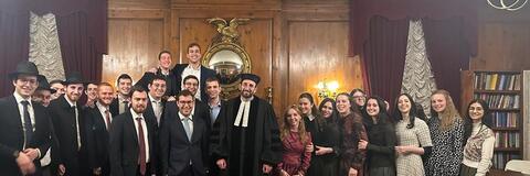 After the Friday evening prayers, Straus Center Director Rabbi Dr. Meir Soloveichik delivered a lecture on the spiritual significance of Argentinian President Javier Milei’s visit to the Ohel, the burial place of Rabbi Menachem Mendel Schneerson. During dinner, Straus Scholar Yaakov Willner (YC ‘25), who interned for Dr. Doran this past summer at the Hudson Institute, provided introductory remarks. Subsequently, Rabbi Soloveichik interviewed Dr. Doran, exploring his transition from academia to government and his tenure as a National Security Council advisor under President George W. Bush. The evening concluded with a lively Q&A session with Straus Scholars.